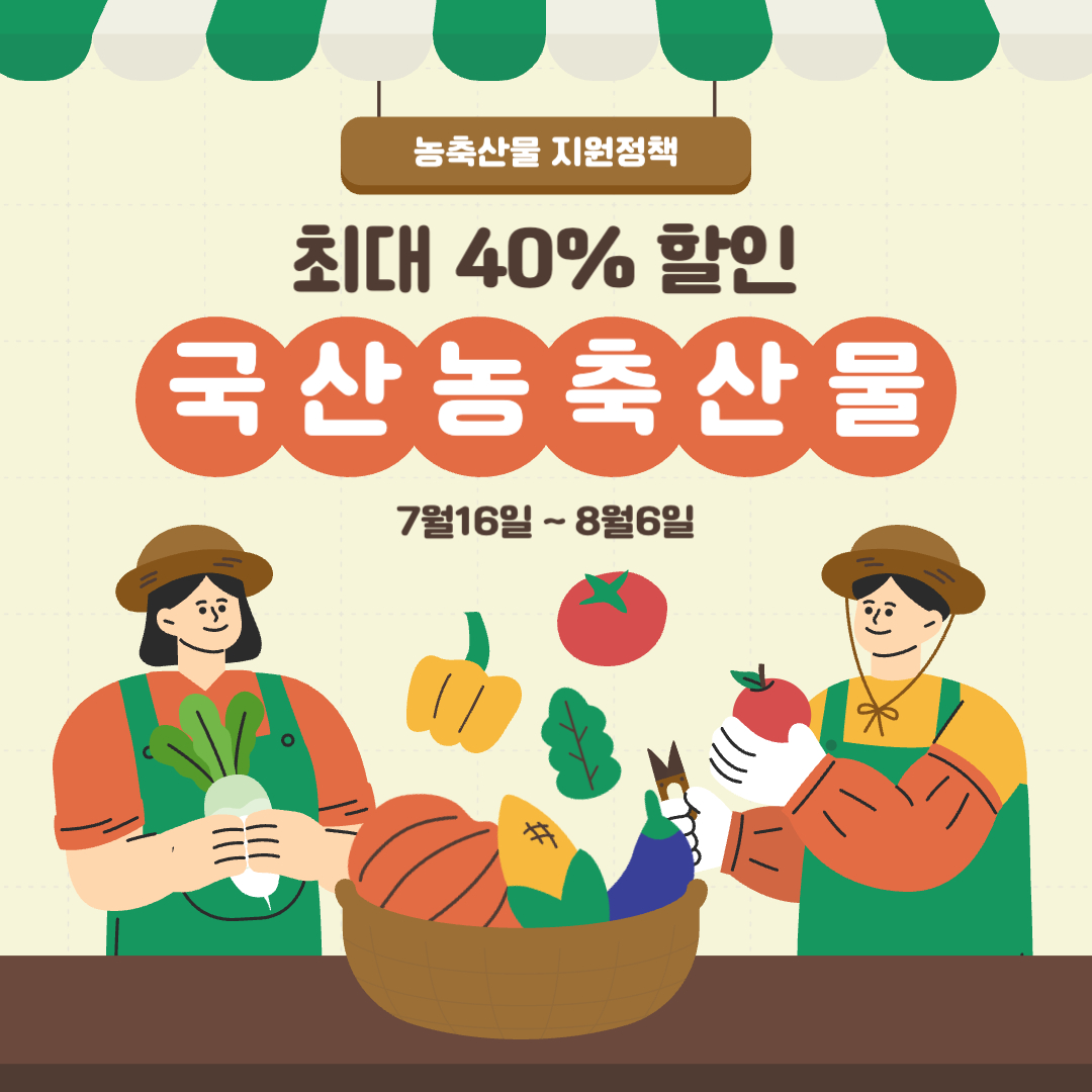 주변 분들에게도 꼭 알려주시고, 여름 휴가철 장보기는 국산 농축산물 할인 행사와 함께 해보세요! 🛒🍖🥬