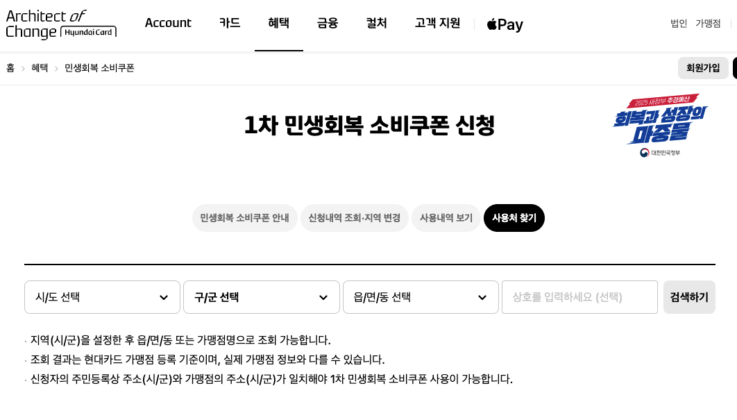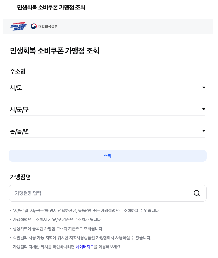 - 주소지나 키워드로 주변 사용처 검색 가능