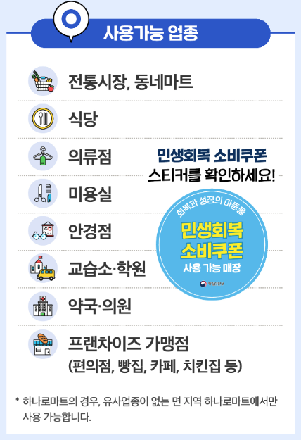 사용 가능한 매장, 대상 조건 등은 대한민국 정책브리핑 또는 정부24에서 최신 정보 확인 가능합니다.