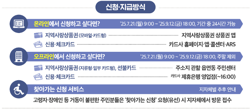 - 지급수단: 신용/체크카드, 지역사랑상품권, 선불카드