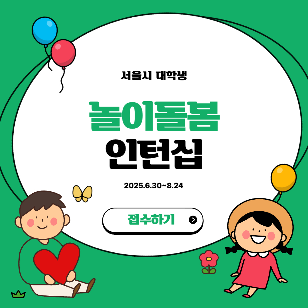 🌟 아동과 함께하는 의미 있는 여름방학! 「서울시 대학생 놀이돌봄 인턴십」에 참여하여 소중한 경험을 쌓아보세요.