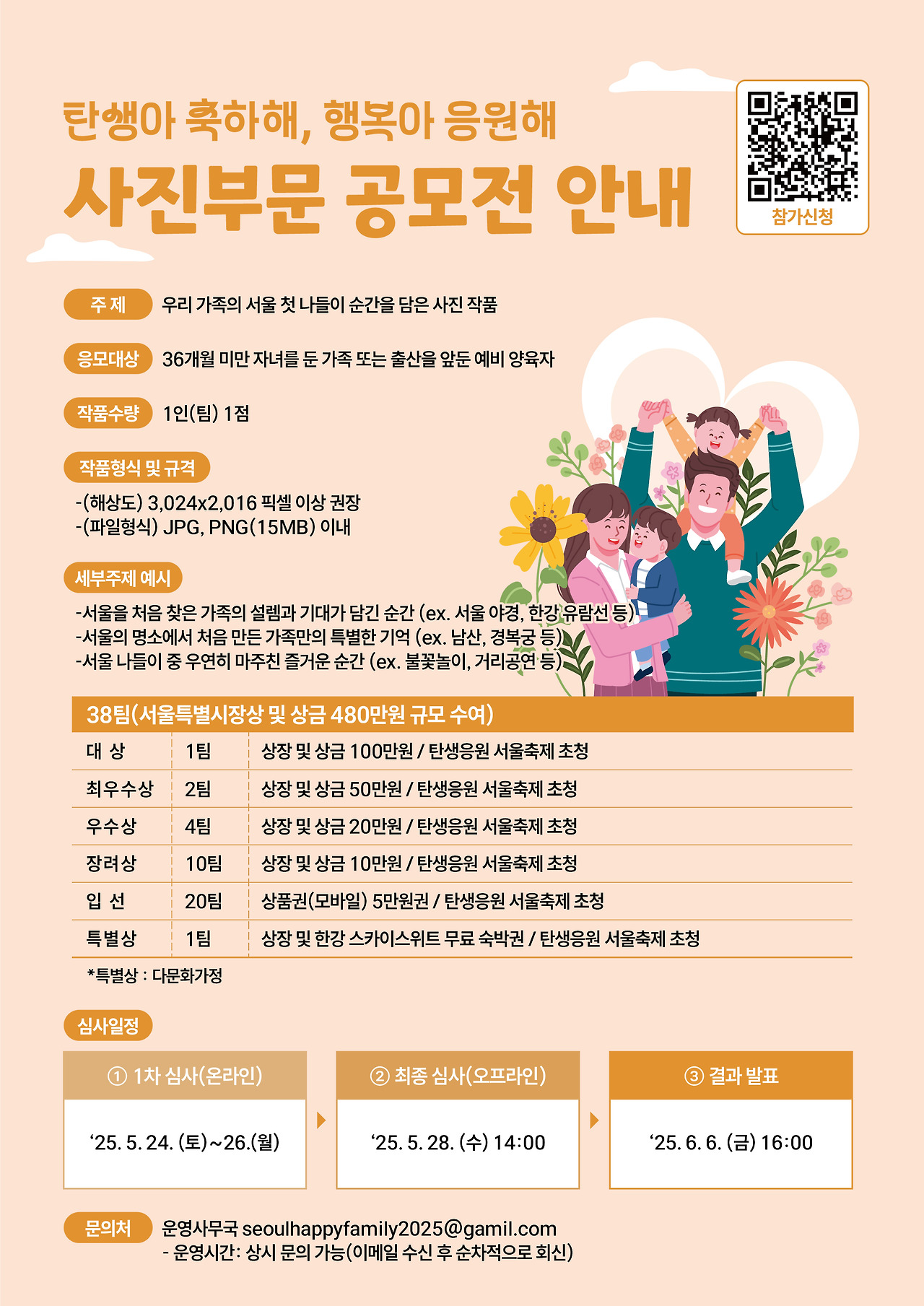 서울시가 출산과 양육의 가치를 재조명하고 가족문화 콘텐츠를 통해 사회 전반에 따뜻한 응원 문화를 확산하기 위해 「2025 탄생응원 서울축제」 공모전을 개최합니다.