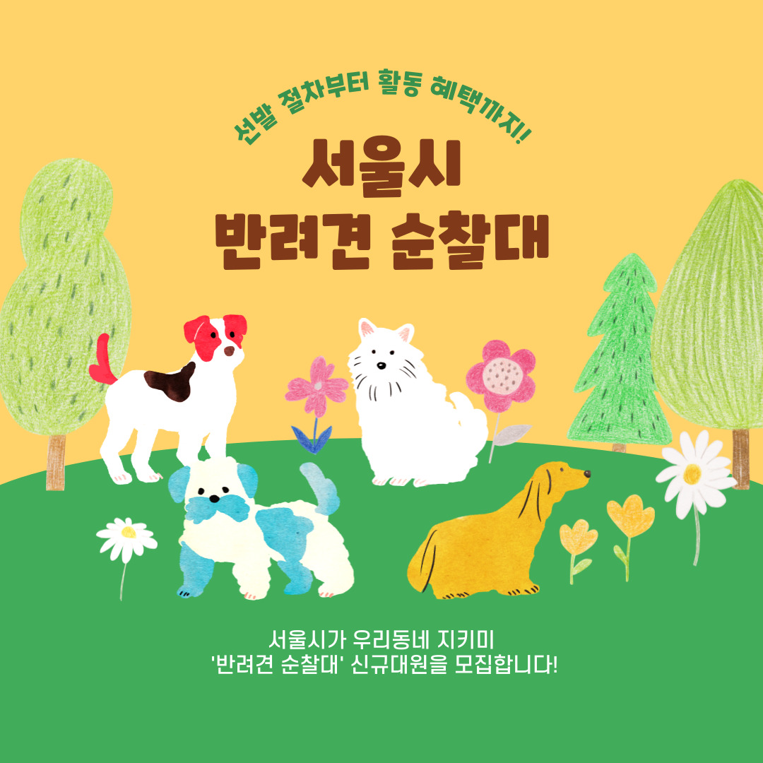 서울시가 반려견과 함께 우리 동네를 지키는 ‘반려견 순찰대’ 신규 대원을 모집합니다. 반려견과의 산책을 통해 지역 안전을 지키는 특별한 활동에 참여해보세요!