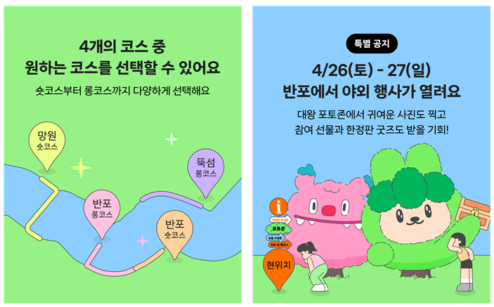 행사 첫 주말인 4월 26일(토)과 27일(일)에는 반포한강공원 달빛광장에서 대형 포토존과 당근 이벤트 부스가 운영되며, 부스 방문자들에게는 경품이 제공될 예정입니다.