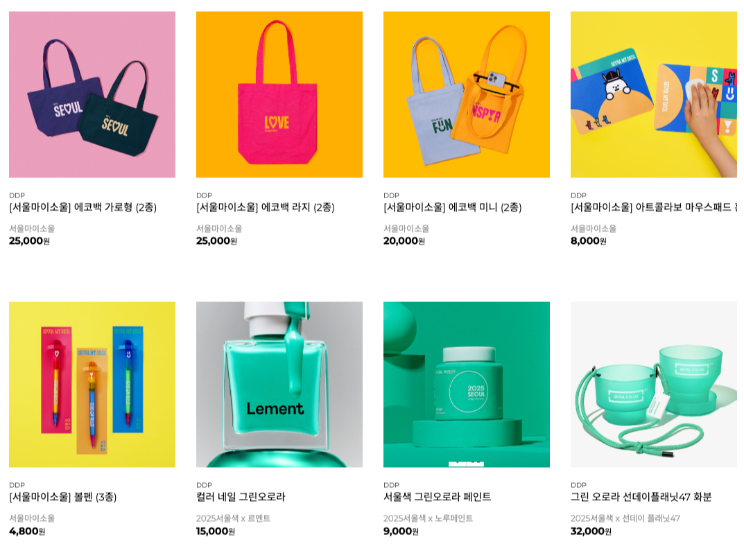 - 판매상품 : 국내 우수 디자인 브랜드 14개사의 상품, 서울브랜드(해치&소울프랜즈,서울마이소울,DDP)의 인기 상품 60여 종