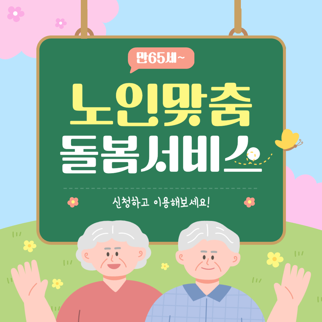 - 만 65세 이상 국민기초생활수급자, 차상위계층 또는 기초연금 수급자 중 독립적인 일상생활에 어려움이 있는 노인