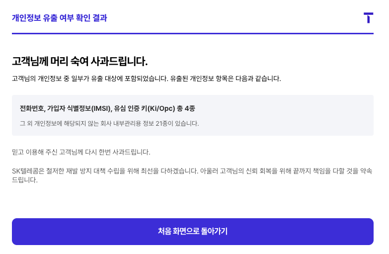 SK텔레콤 고객이라면 지금 바로 T월드 홈페이지에서 내 정보가 유출됐는지 확인해보세요.